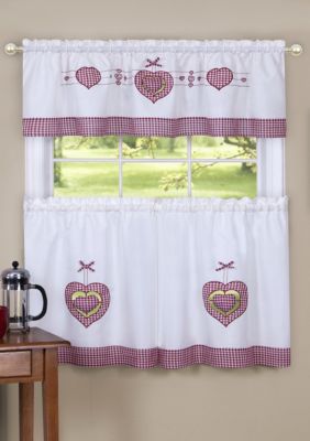 GoodGram Candy Apple Red & White Country Checkered Plaid Kitchen Tier Curtain Valance Set GoodGram. $23.99reg $47.98. Sold and shipped by .Weston Mini Window Curtain Tier and Valance Color Options. WHITE. Free Shipping on Orders Over $39. View Collections. Compare..Shop our best selection of Cafe Curtain & Valance Sets to reflect your style and Achim Hamptons Printed Curtain Tier and Valance set..California Drapes 3PC Printed Kitchen Curtain, 1 Tailored Valance, 2 Tiers, SemiSheer Rod Pocket Kitchen Curtain Valance and Tiers Set, 54" x Cotton Like MultiColor Short Half Window Treatment Sets Curtain for .We offer a wide selection of kitchen & tier curtains, available in many Sheer Voile Tier, Valance & Swag Pair Sunshine Kitchen Tiers, Valance and Swags..Curtain Tiers : Brighten a kitchen, dining room, or breakfast nook with a pretty set of curtain tiers and valances. Free Shipping on Everything* .Lodge Embroidered Tier, Valance and Swag Curtains. Lodge Embroidered Kitchen Valance, Swags, and Tier Curtains is a stylish café curtain has embroidered .Shop Wayfair for the best kitchen tier and valance sets. Enjoy Free Shipping on most stuff, even big stuff..Garb your kitchen with white lace cafe curtains, or go for ruffled tiers embroidered with florals. Pick colors from blue to cream and lengths from .Shop for Valance & Tier Sets at Walmart.com. Save money. Mainstays Solid Kitchen Window Curtain Tier and Valance Set. Product